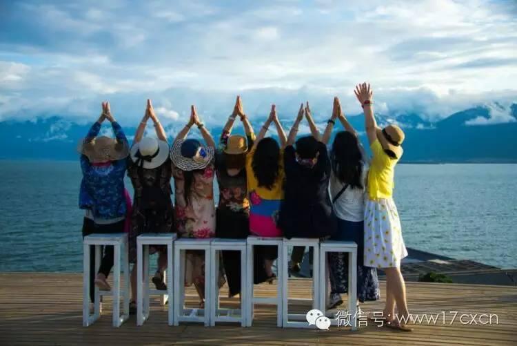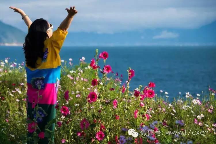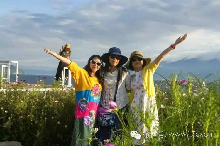 平时不活跃的大姐此时也生动起来。摆出优雅的姿态,融化在美景里。